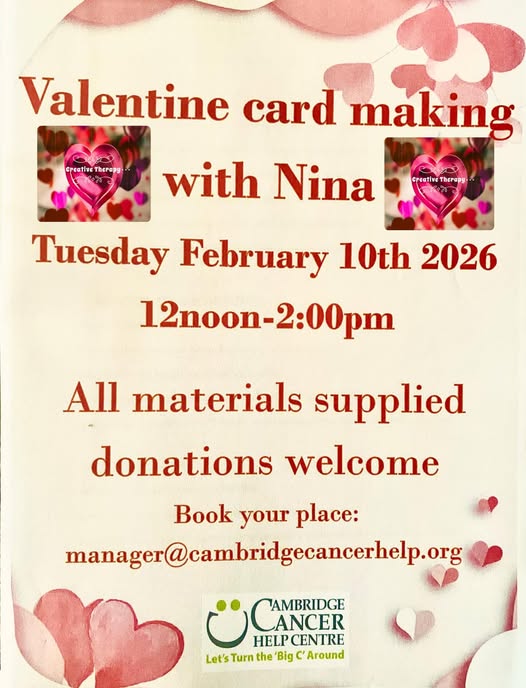 Join is on 10th Feb to make Valentine 💝 cards with Nina. To book in call the office on 01223 840 105 or email us.